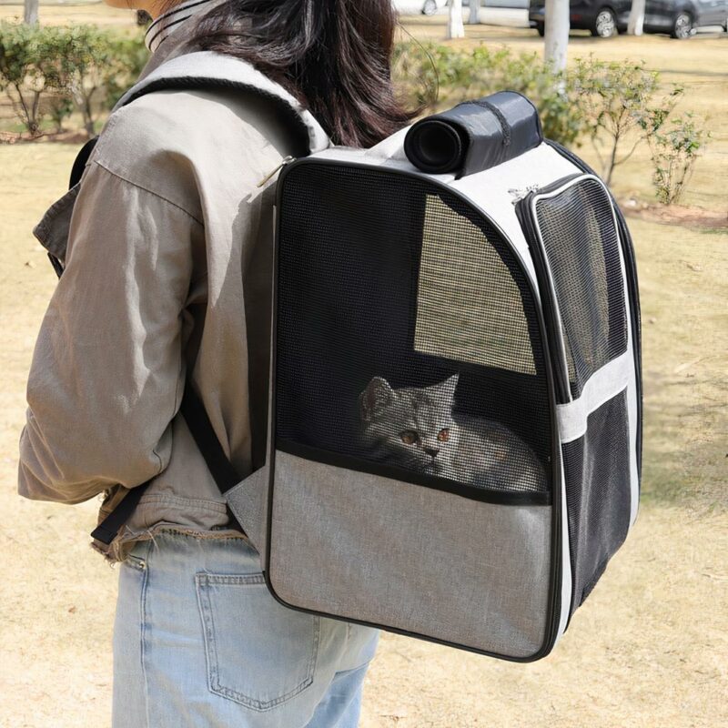 Er ist außerdem mit einem Vorhang ausgestattet, der es Ihrer Katze ermöglicht, zu sehen, was um sie herum passiert, während sie vor neugierigen Blicken geschützt ist. Der verstellbare Gurt und die gepolsterten Schultergurte sorgen für eine hervorragende Passform und Ergonomie. Mit diesem Katzenrucksack können Sie sicher sein, dass Ihr Lieblingstier immer bequem und sicher unterwegs ist.