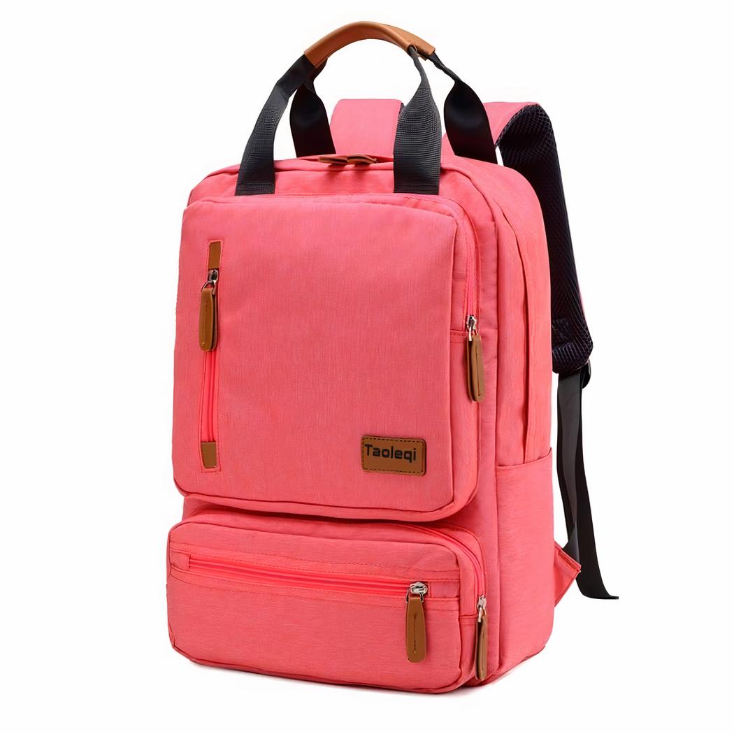 Dieser Rucksack verfügt über ein geräumiges Hauptfach, das einen Laptop bis zu 15,6 Zoll und mehrere andere Gegenstände aufnehmen kann. Es gibt auch eine Vordertasche mit Reißverschluss, in der kleine Gegenstände wie Schlüssel, Stifte und Karten verstaut werden können.