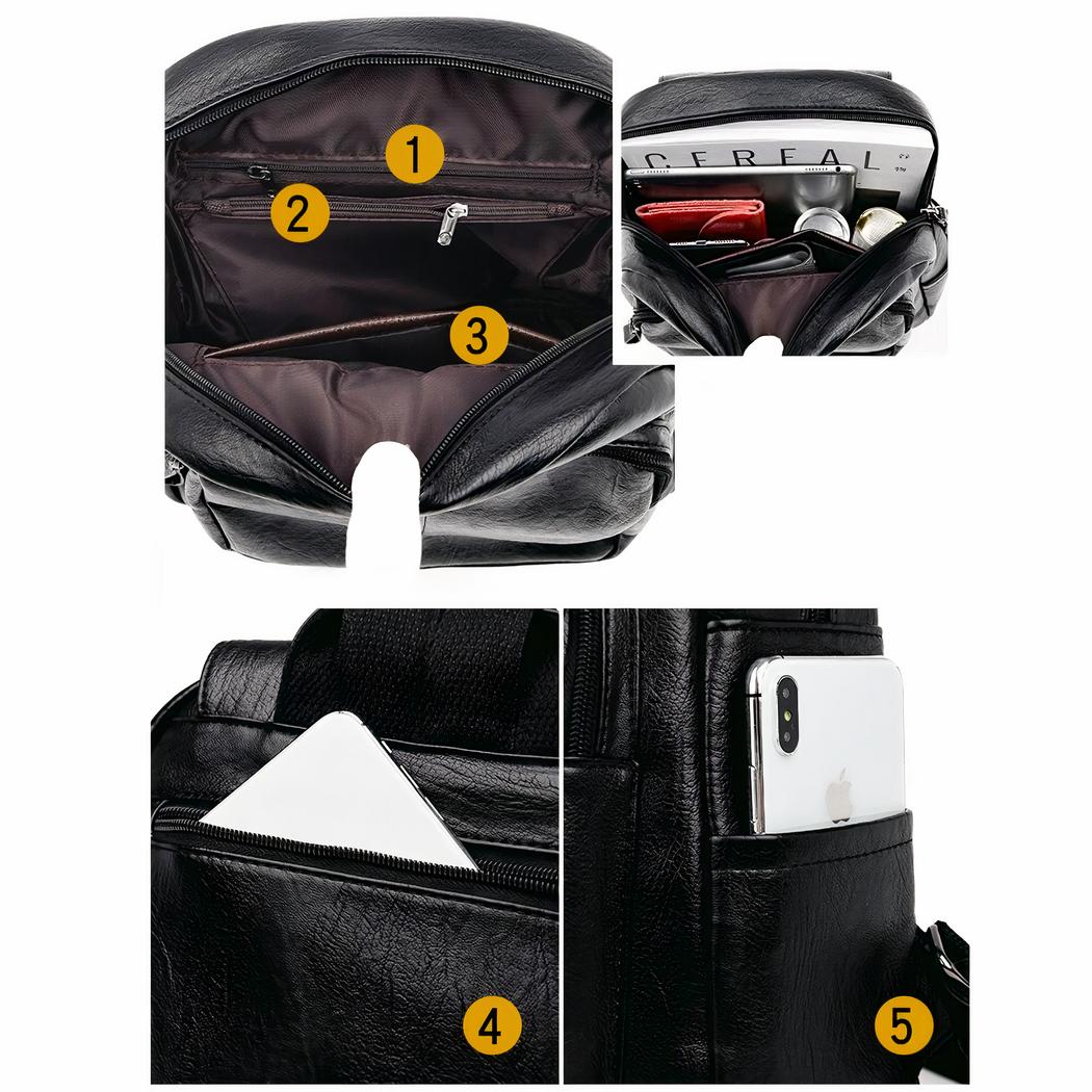 Dieser Damen-Rucksack aus Schafslederimitat ist der ideale Begleiter für alle Ihre Reisen. Sein elegantes und zeitloses Design ist perfekt, um Ihren Look zu vervollständigen.