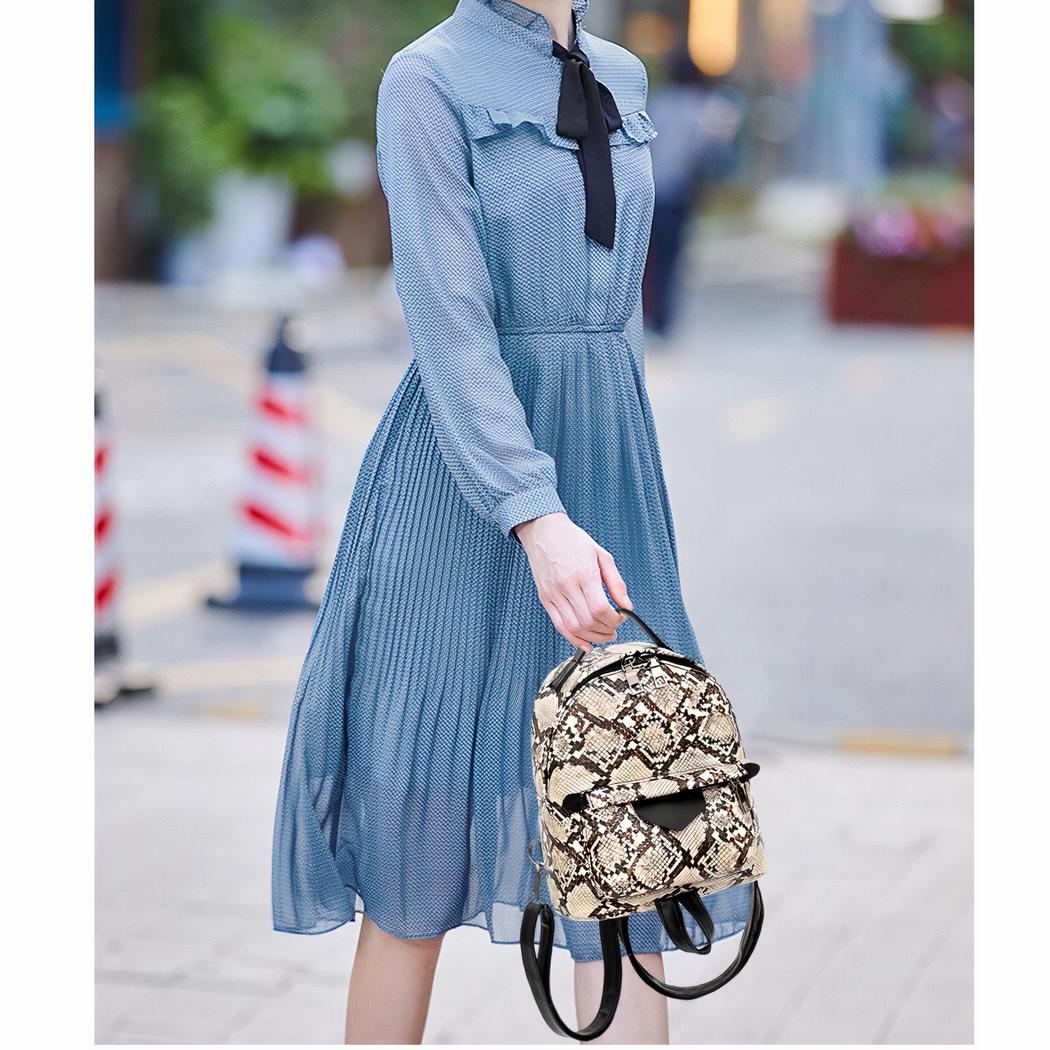 Der Rucksack aus Kunstleder in Schlangenoptik ist ein modisches und praktisches Accessoire. Hergestellt aus weichem und strapazierfähigem Kunstleder, bietet er ein luxuriöses Gefühl und eine makellose Verarbeitung.