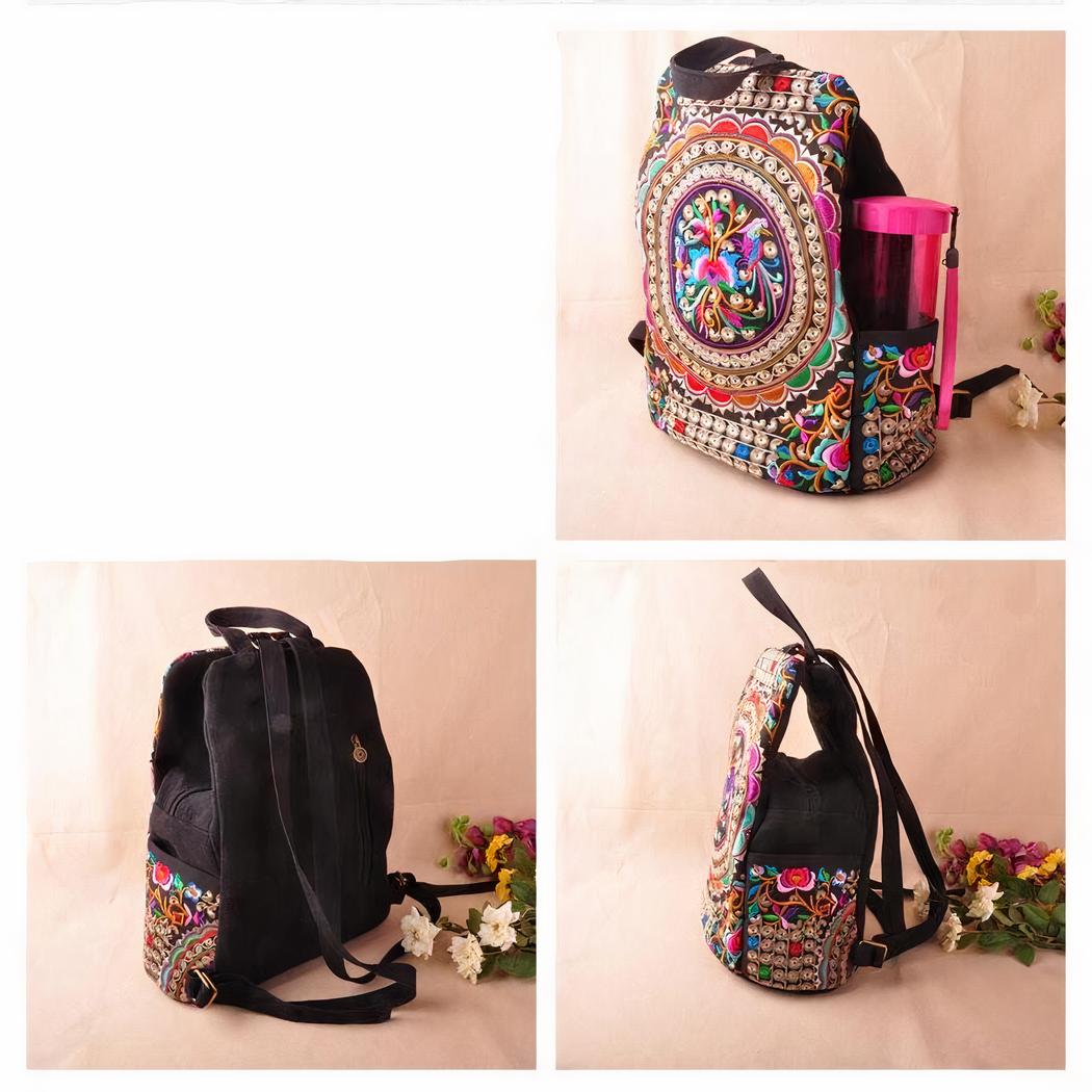 Die Muster sind von Stammeskulturen inspiriert, mit Streifen, Punkten und Blumen. Der Stoff ist weich und bequem, so dass dieser Rucksack sehr angenehm zu tragen ist.