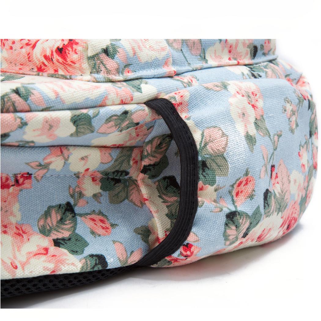 Dieser Rucksack ist mit einem hübschen Blumenmuster verziert, das Ihrem Look einen femininen Touch verleiht.