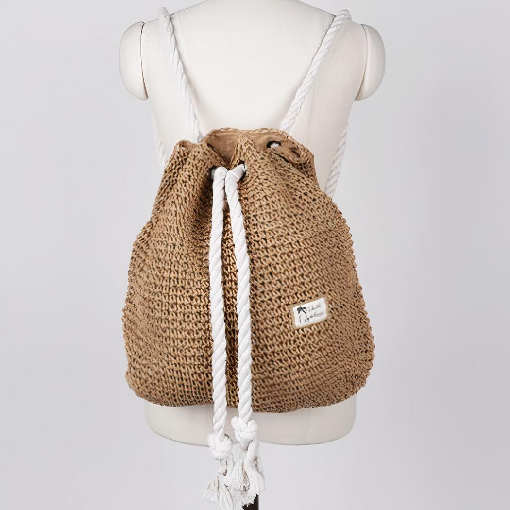 Unser Sommer-Rucksack aus Stroh mit gestrickter Kordel ist ein ideales Modeaccessoire für sonnige Tage.