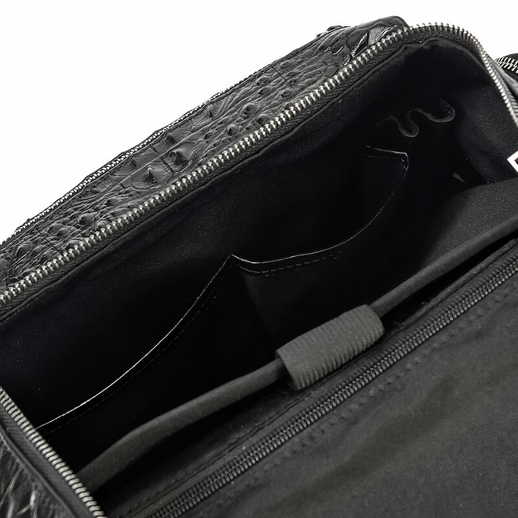 Dieser Lederrucksack ist ein zeitloses und elegantes Stück, das zu jedem Stil passt. Er ist aus hochwertigem Leder gefertigt, das ihm eine reiche und luxuriöse Textur verleiht. Die klassische schwarze Farbe und das Alligator-Muster verleihen ihm einen einzigartigen und anspruchsvollen Look.