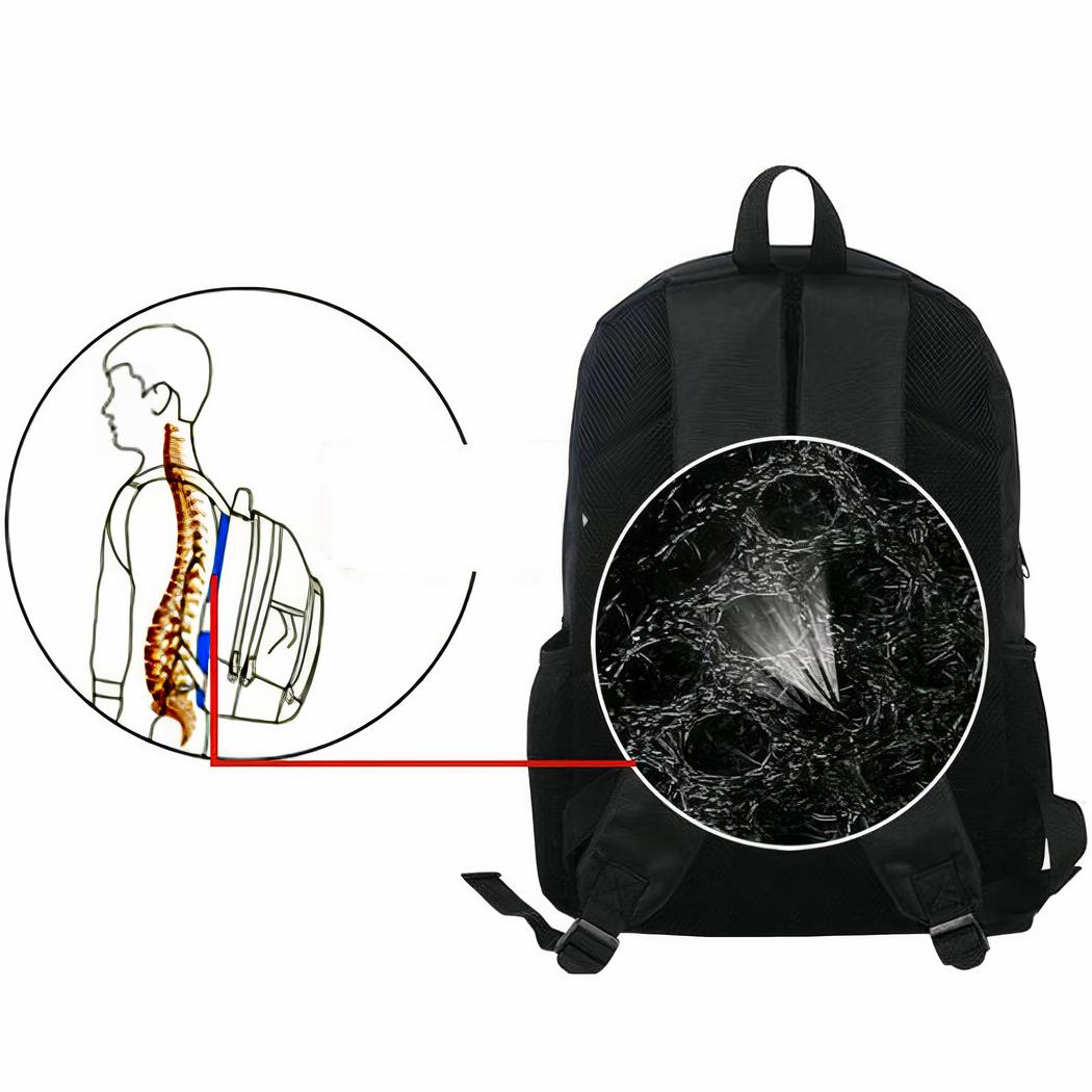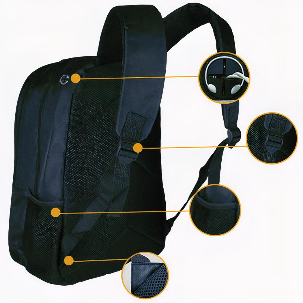 Die gepolsterten Schultergurte bieten optimalen Komfort und ermöglichen es, den Rucksack auch an einem langen Tag in der Schule oder bei Aktivitäten leicht zu tragen. Eine kleine Kerbe ermöglicht das Aufhängen von kabelgebundenen Kopfhörern, um Knoten im Rucksack zu vermeiden. Das Design des Rucksacks ist elegant und modern, mit einem gedruckten Logo des berühmten Fußballspielers Cristiano Ronaldo auf der Vorderseite.