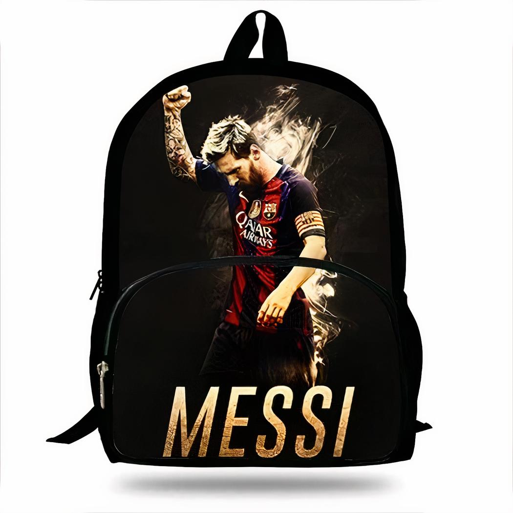 Dieser Kinderrucksack besteht aus strapazierfähigem Polyester und ist angenehm zu tragen, so dass er perfekt für Ihren kleinen Jungen ist, wenn er zur Schule geht. Der Rucksack hat ein Messi-Druckmotiv in verschiedenen Farben, was ihn auffällig und einzigartig macht.