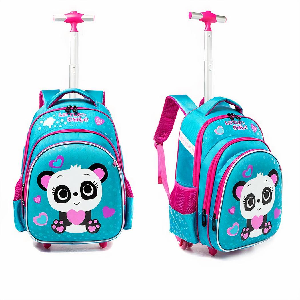 Dieser Mädchen Rucksack mit Rollen im Panda-Design ist perfekt für kleine Abenteurerinnen. Er ist aus robustem, langlebigem Stoff gefertigt und seine Gummirollen sind so konstruiert, dass sie eine ruhige und stabile Fahrt ermöglichen.