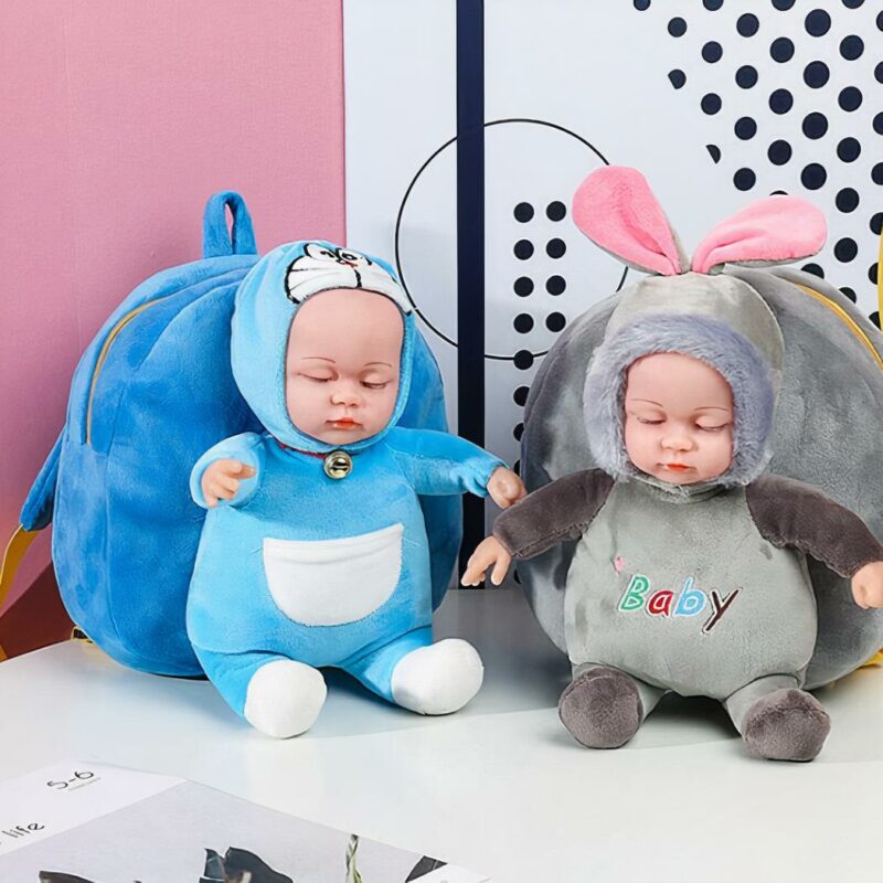 Dieser Rucksack mit integrierter Puppe wird den Kleinsten gefallen. Die Rückseite des Rucksacks und die Schultergurte sind aus einem weichen, atmungsaktiven Material gefertigt. Er wurde entwickelt, um Rückenschmerzen bei längerem Tragen zu vermeiden.