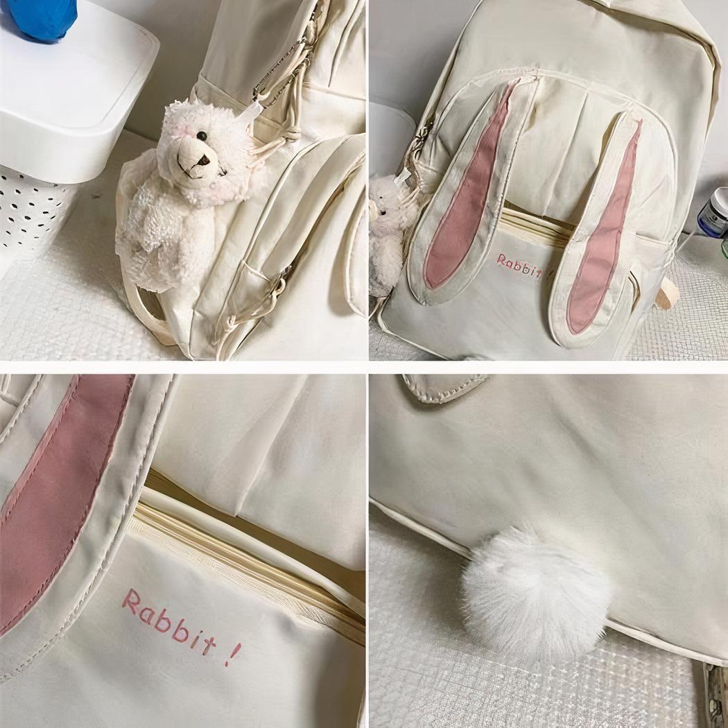 Dieser niedliche Rucksack mit Hasenohren aus weichem, strapazierfähigem Material ist perfekt für Kinder. Er bietet ausreichend Platz für Bücher, Schulmaterial oder kleine Spielsachen.