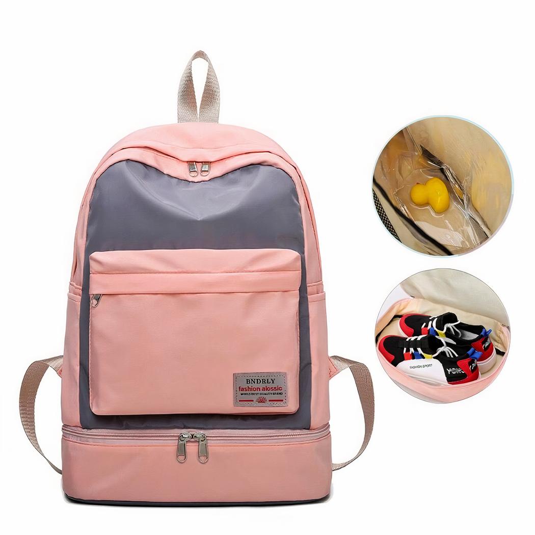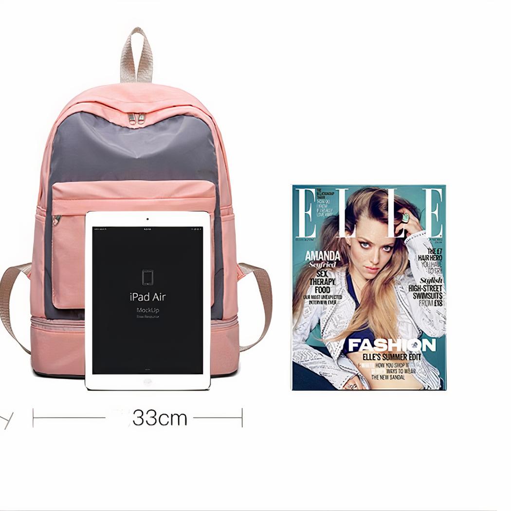 Bei Aktivitäten wie Schwimmen oder Yoga müssen Sie Ihre Schuhe ausziehen. Mit diesem Sportrucksack müssen Sie Ihre Schuhe während des Trainings nicht mehr irgendwo liegen lassen. Ihre Schuhe können in dem dafür vorgesehenen Fach im unteren Teil des Rucksacks aufbewahrt werden.