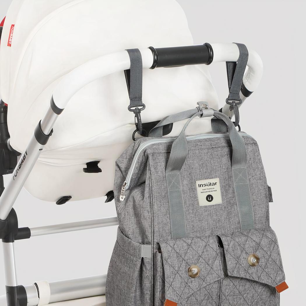 Diese Wickeltasche ist leicht zu transportieren. Außerdem ist sie geräumig und bietet Platz für das gesamte Zubehör für Babys Aktivitäten im Freien. Packen Sie Windeln, Kleidung und Fläschchen ein. Dank der vielen Taschen ist die Aufbewahrung bequem.